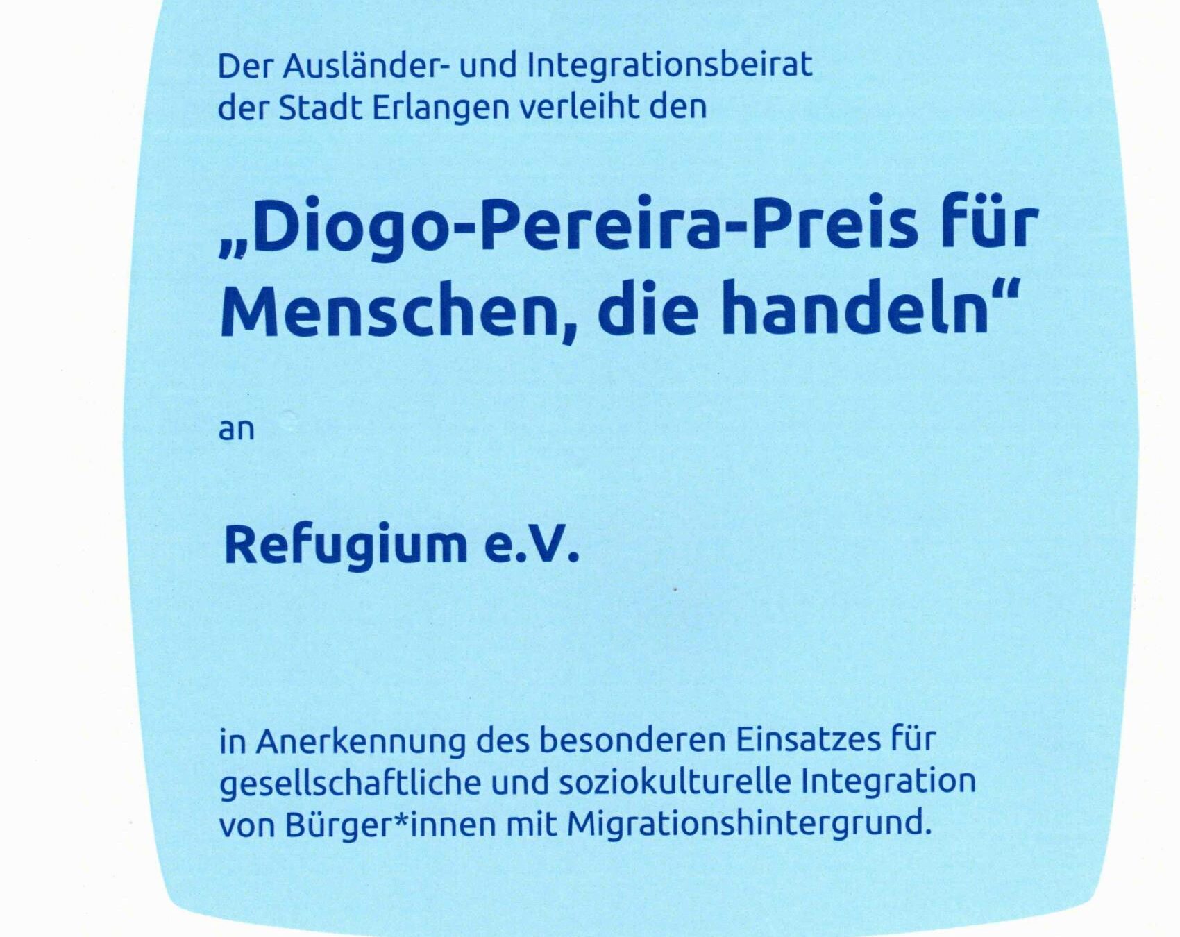 Refugium erhält den “Diogo-Pereira-Preis”