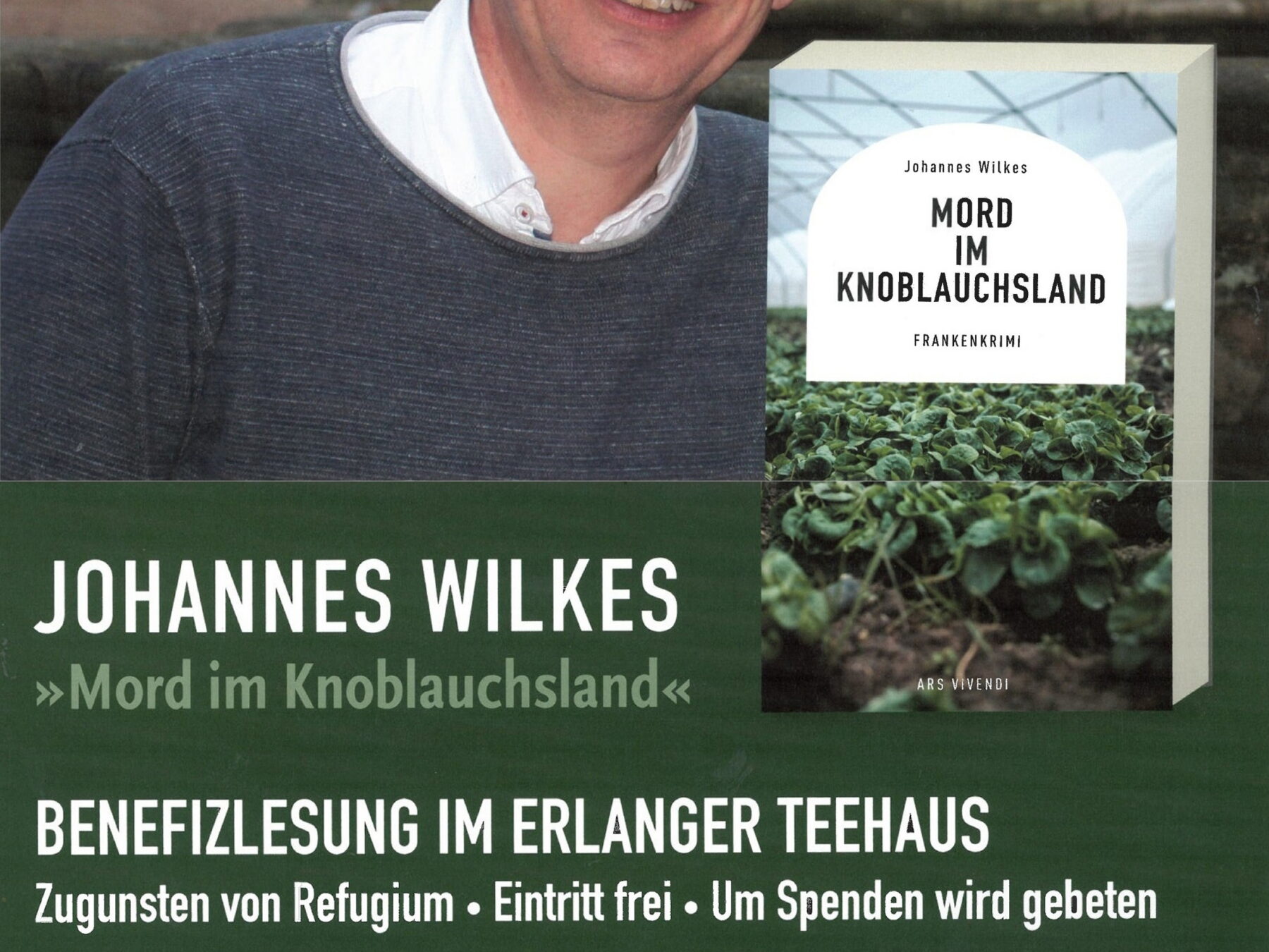 Am Freitag, 20.März um 19 Uhr wird das Refugium Mitglied Dr. Johannes Wilkes im Café Teehaus in Erlangen eine Lesung für Refugium veranstalten. Kulinarische Benefizlesung »Mord im Knoblauchsland« mit Johannes WilkesKulinarische […]