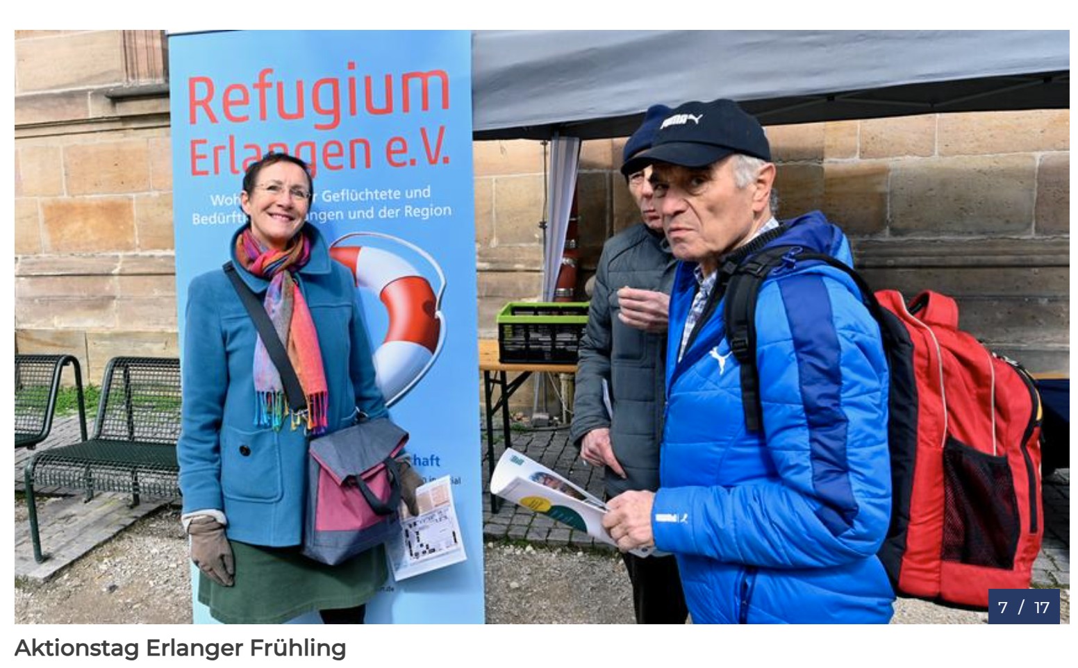 ![]() | Informations-Stand Refugium Erlangen e. V. auf dem Neustädter Kirchplatz beim Erlanger Frühling am 25.03.2023 (Erlanger Nachrichten Lokalteil 27.03.2023) |