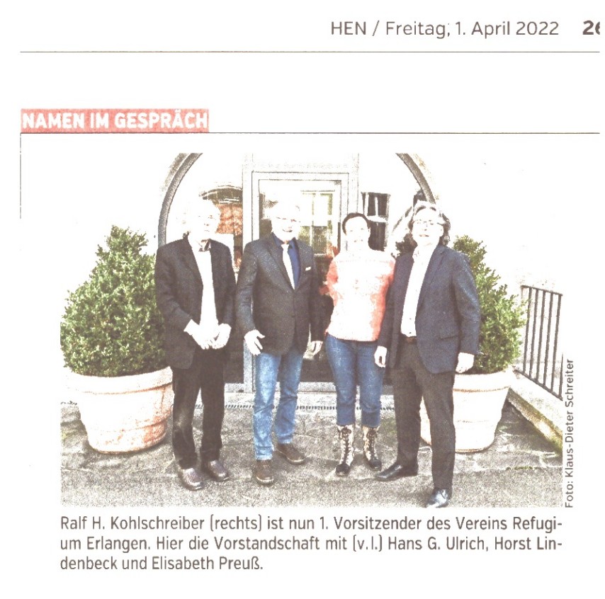 ![]() | Vereinsinformation und Neuwahlen des Vorstands (Namen im Gespräch, Erlanger Nachrichten Lokalteil 01.04.2022) |